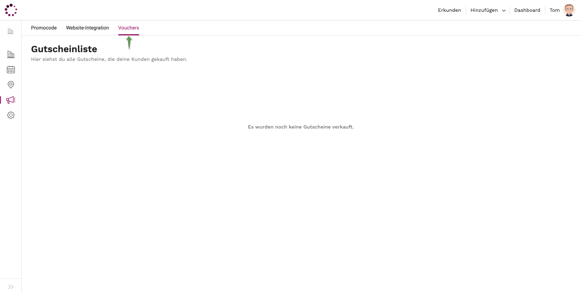 Click on PromotionsIf you have activated the voucher function and your customers can buy vouchers from you, you can also find an overview of your vouchers sold in Promotions under the "Vouchers" tab
